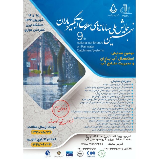 نهمین همایش ملی سامانههای سطوح آبگیر باران در تبریز برگزار میشود