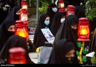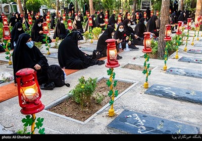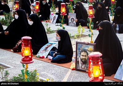 اجتماع سالانه همسران شهدای مدافع حرم با سخنرانی حجت الاسلام سید حسین آقامیری و مداحی امیر عباسی با رعایت پروتکل های بهداشتی در گلزار شهدای تهران برگزار شد.