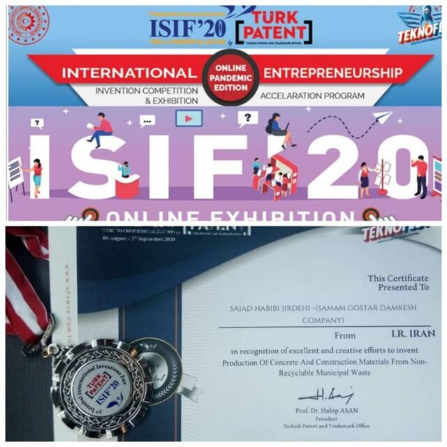 تولید کننده مصالح بتنی و ساختمانی از زباله های دفنی توانست مدال نقره مسابقات بین المللی آنلاین اختراعات را از آن خود کرد.