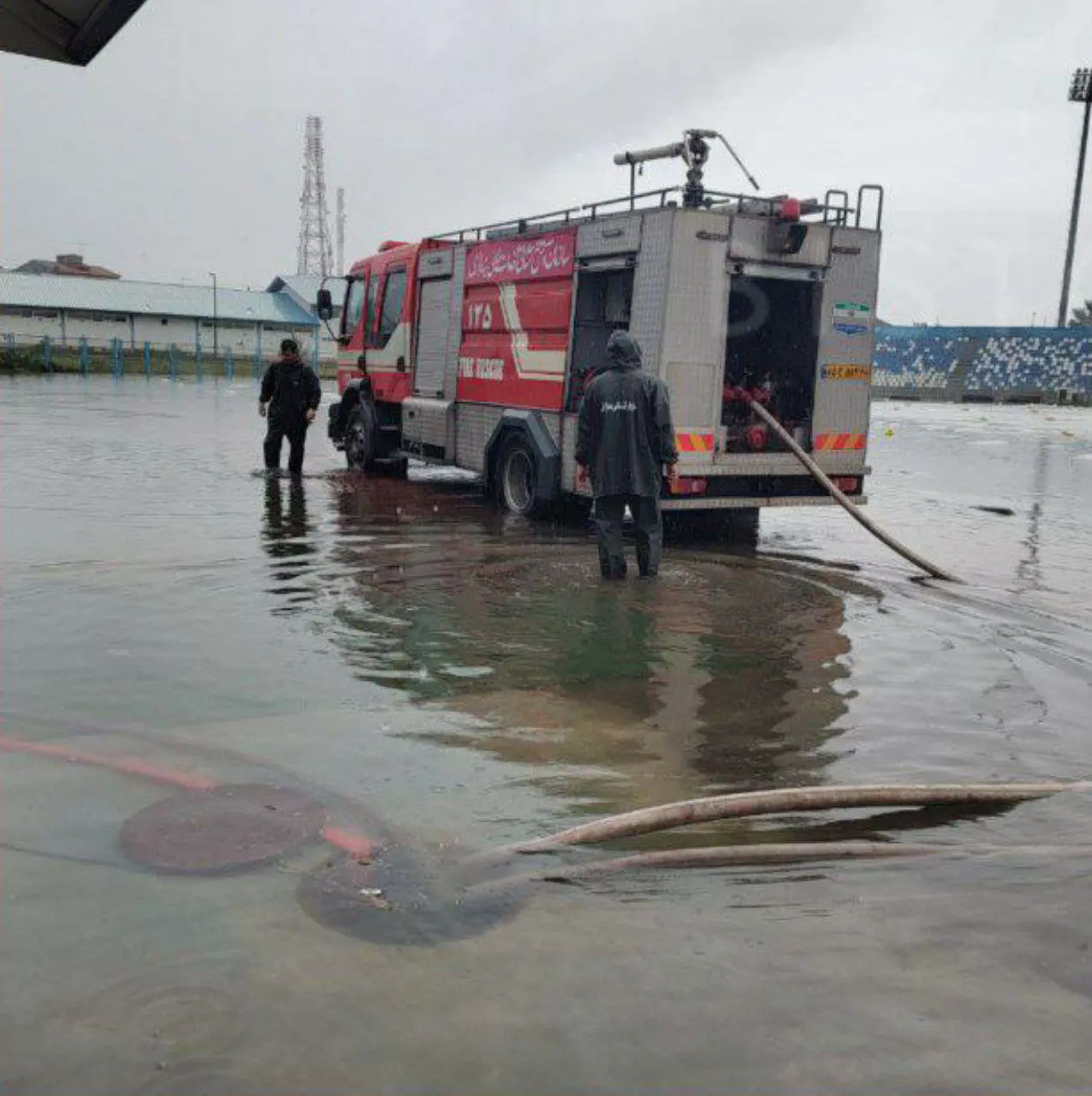 دیدار فوتبال بین ملوان بندر انزلی و خیبر خرم آباد به دلیل بارش شدید باران و آب گرفتگی ورزشگاه لغو شد.