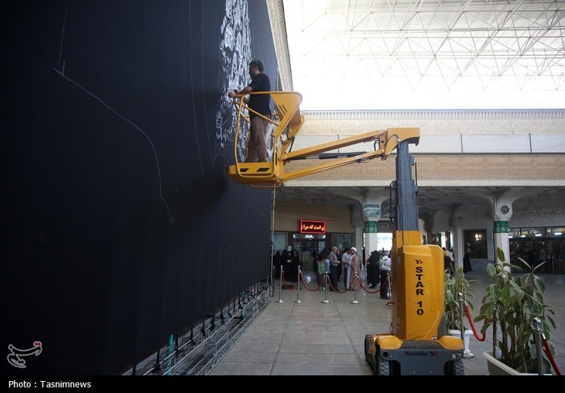 کتیبه زیبای عش آل محمد که به مناسبت سالروز رحلت حضرت فاطمه معصومه(س) توسط امیر تدین نوشته شده با نصب در شبستان امام خمینی(ره) حرم مطهر رونمایی شد.