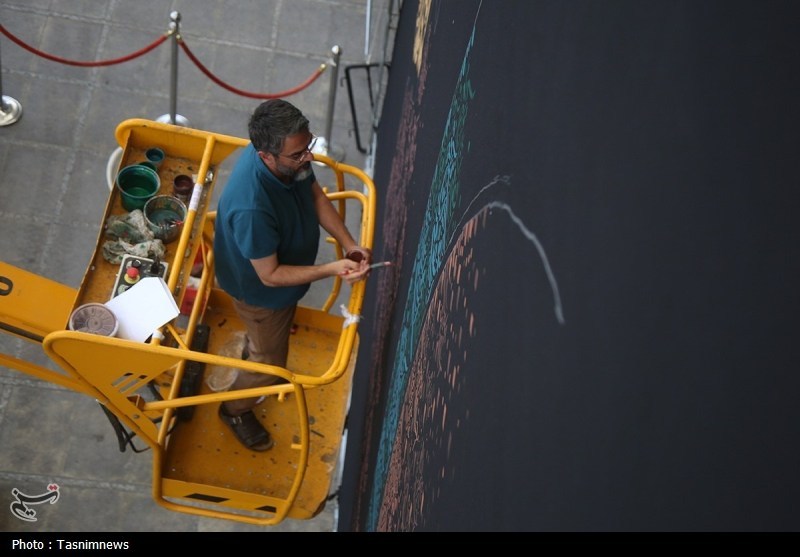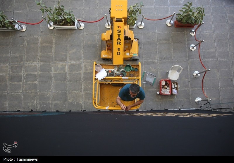 تدین با اشاره به ابعاد و رنگبندی اثر تصریح کرد: این کتیبه در اندازه 13 متر در 7 متر طراحی شده و رنگهای طلایی، سفید و مسی در آن بهکار رفته است.