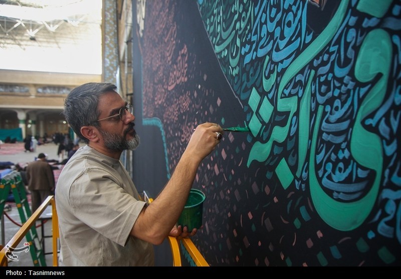 در کنار نصب نهایی این کتیبه، اجرای زنده نیز برگزار شد که روند کار هنری را برای زائران ملموستر و ارزشمندتر کرد.
