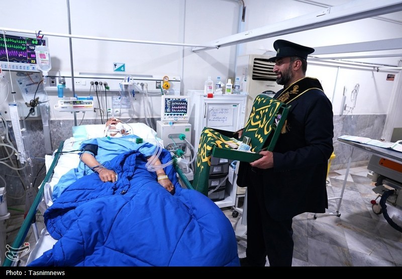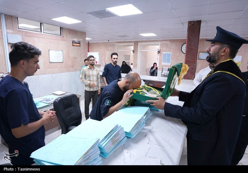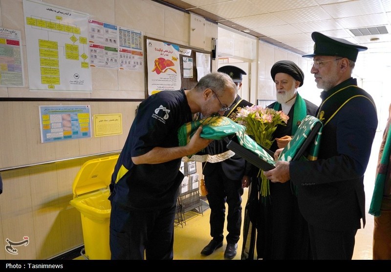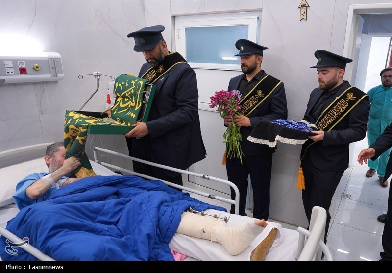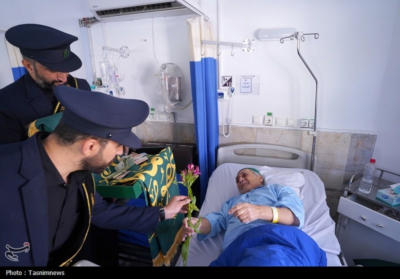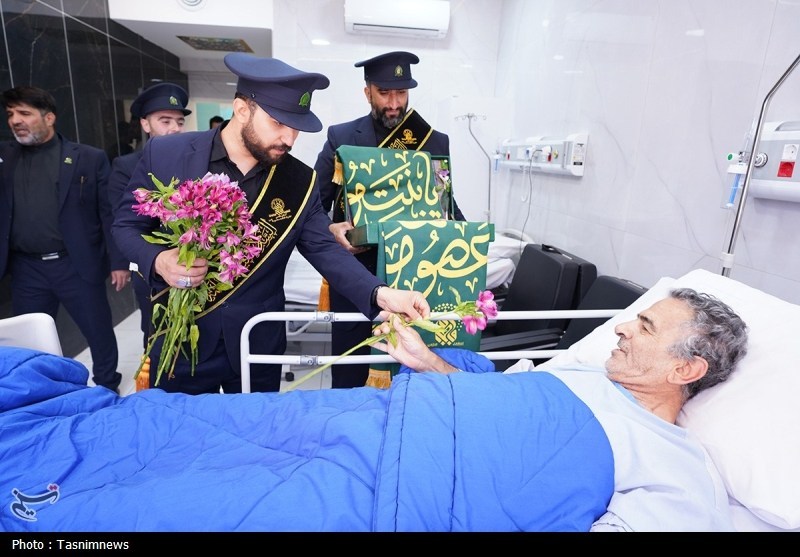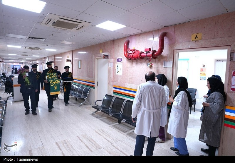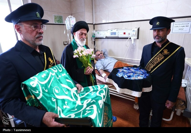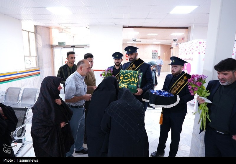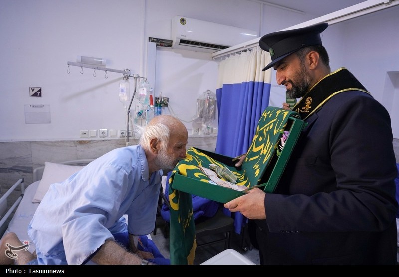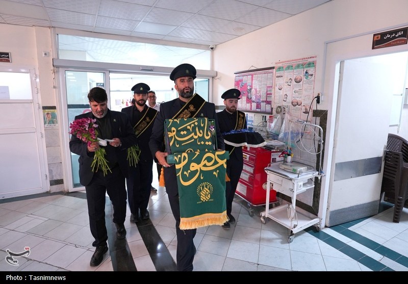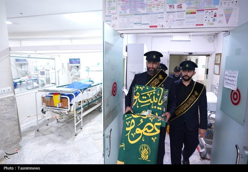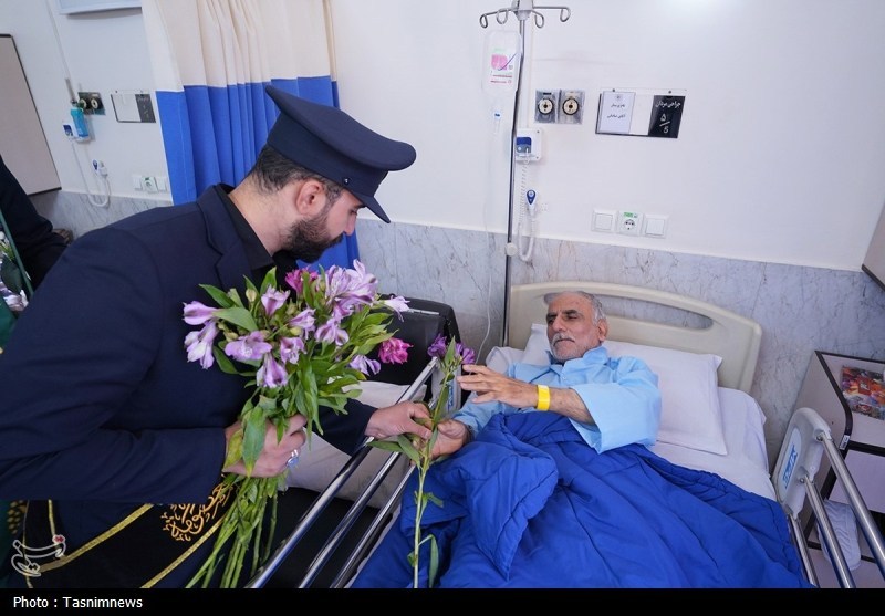 خادمان حرم مطهر حضرت فاطمه معصومه سلام الله علیها به همراه پرچم متبرک حرم مطهر در آستانه سالروز رحلت بانوی کرامت با حضور در دو بیمارستان از بیماران عیادت کردند.