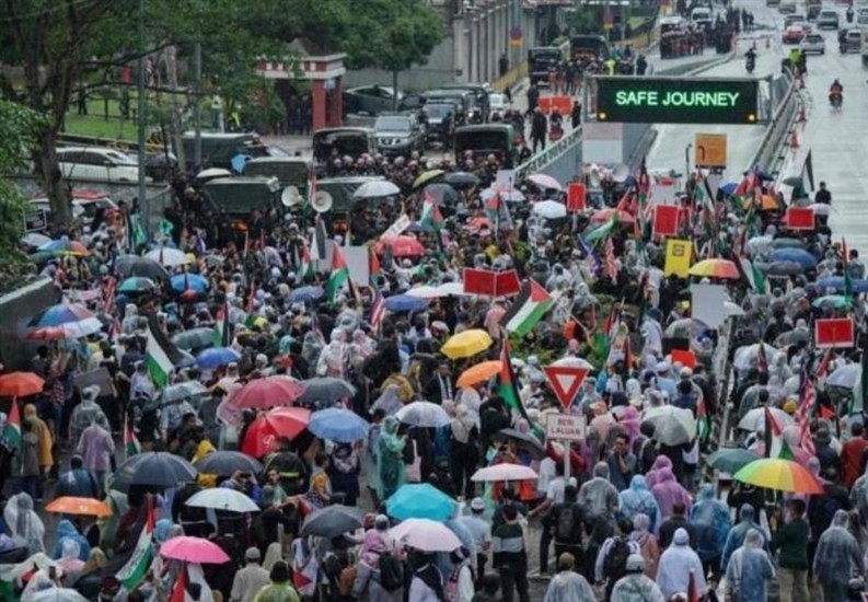 هزاران نفر طی دو روز پیاپی در برابر سفارت آمریکا در کوالالامپور تظاهرات کردند و خواستار فشار واشنگتن بر اسرائیل برای آزادی بازداشتشدگان شدند.