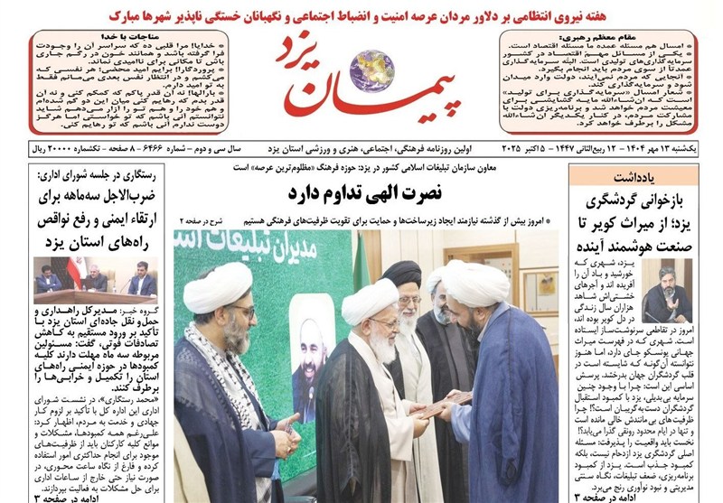 مهمترین تیترهای روزنامه «پیمان یزد» از اخبار یزد: