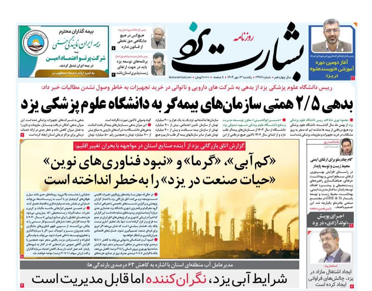 مهمترین تیترها و عناوین روزنامه بشارت یزد: