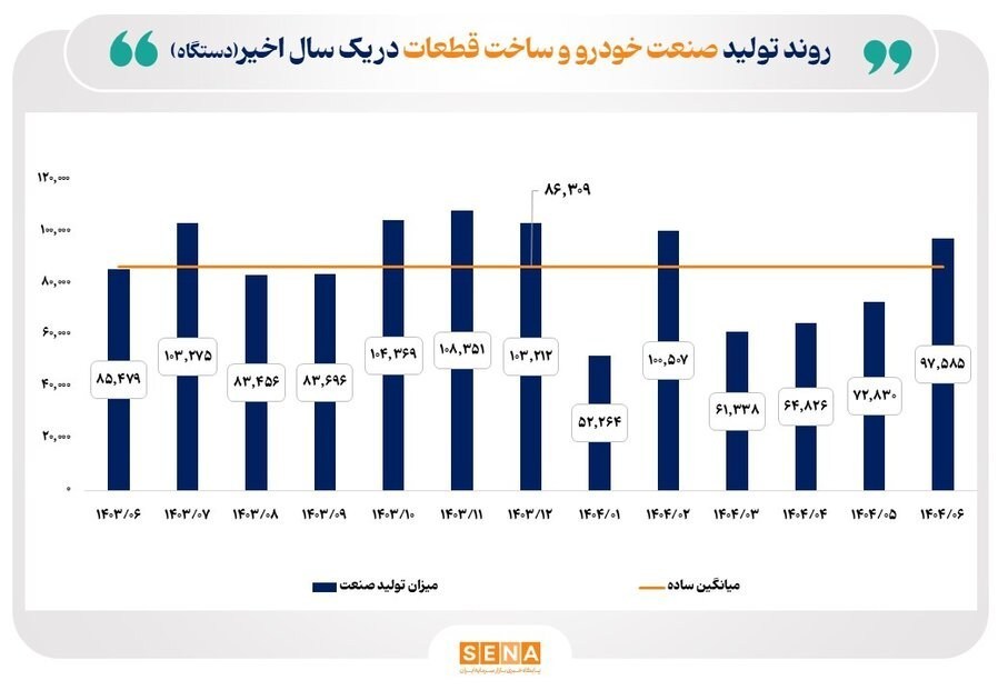 افزون براین، در تابستان 1404 مقدار تولید صنعت خودرو نسبت به فصل قبل (بهار 1404) 10 درصد افزایش داشته اما نسبت به فصل مشابه سال قبل (تابستان 1403) 7 درصد کاهش داشته است.