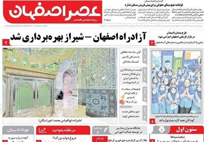 مطبوعات سه شنبه 15 مهرماه در استان اصفهان- عکس صفحه استان تسنیم