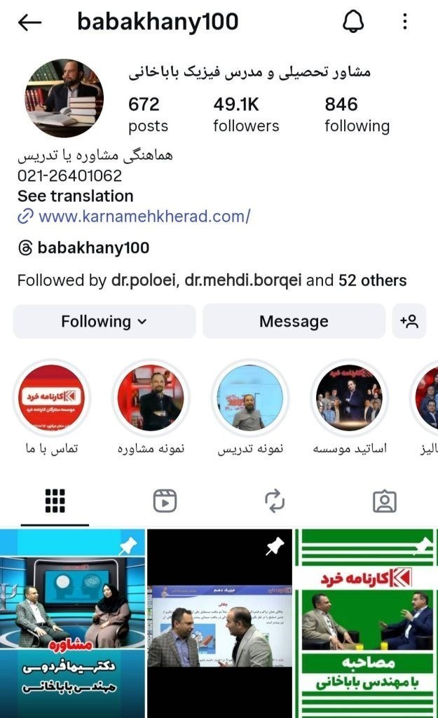 مهدی باباخانی بهترین مشاور تحصیلی ایران است اما در عین حال گرانترین مشاور تحصیلی ایران نیز میباشد.