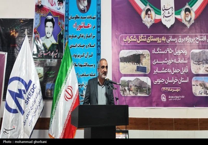 به مناسبت روز ملی روستا و عشایر و با حضور استاندار خراسان جنوبی و مجری طرح برق روستایی شرکت توانیر ، فرماندار بیرجند،مدیرعامل شرکت توزیع نیروی برق خراسان جنوبی وجمعی از مسئولان استان وشهرستان پروژه برقرسانی به روستای تنگل شکراب افتتاح شد.اجرای این پروژه با اعتبار 13 میلیارد تومان، 25 خانواده ساکن در این روستا را از نعمت برق بهره مند می کند.