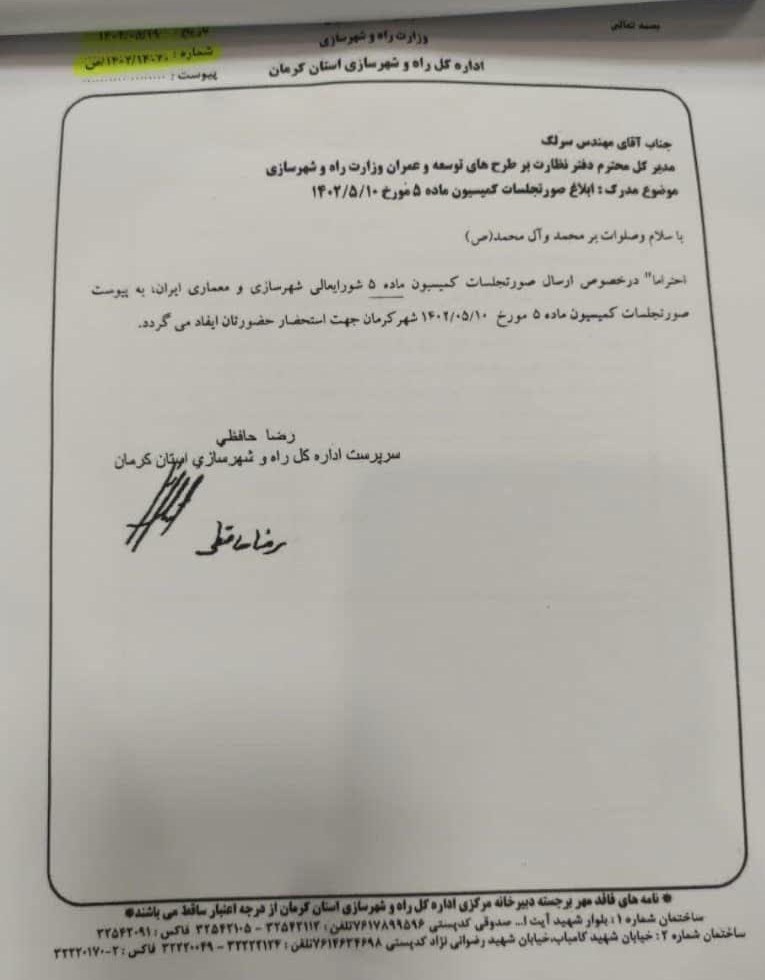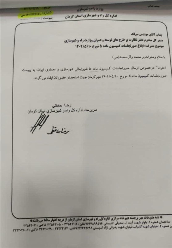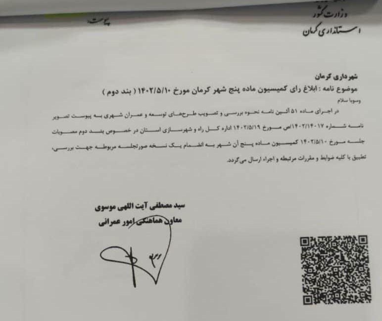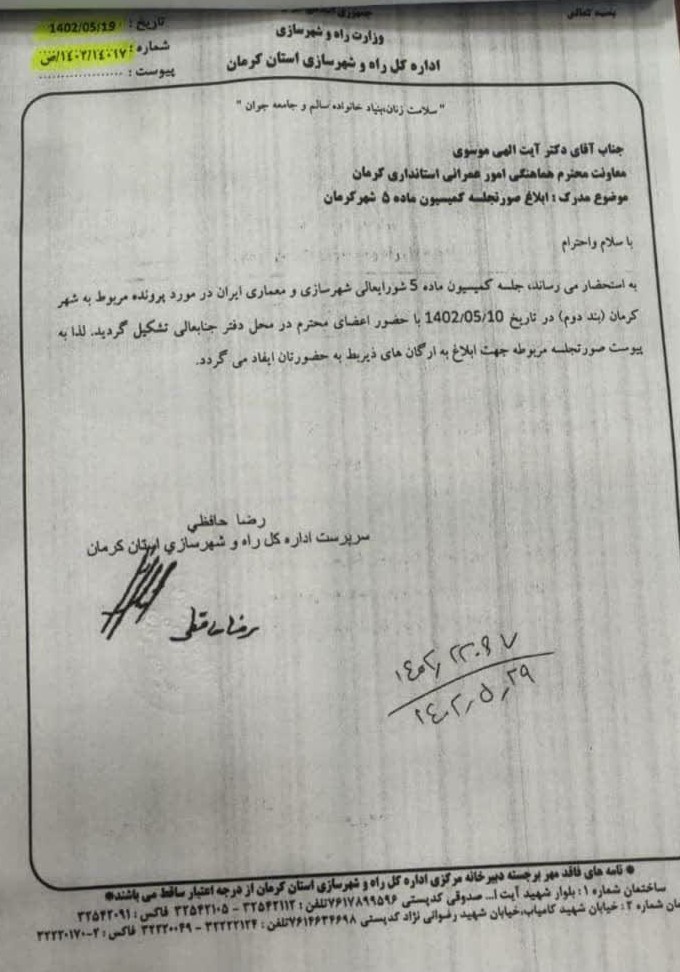 معاون هماهنگی امور عمرانی استانداری کرمان توضیح داد: پرونده از سوی شهرداری تکمیل و به دبیرخانه کمیسیون ارسال شد.