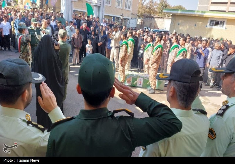 نیروهای سپاه، با چهرههایی جدی و چشمانی پر از اشک، همرزم خود را به خاک سپردند.