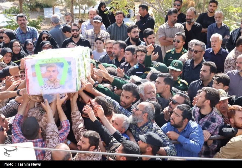 زنان با حجاب سیاه و چشمانی خسته از گریه، مردانی با ریشهای خیس از اشک، کودکانی که دستانشان را به سوی پرچم دراز کرده بودند، بازاریانی که دکانهایشان را بسته و به مراسم پیوسته بودند، دانشآموزانی با یونیفرم مدرسه که با گلهای سفید و سرخ، راه پیکر شهید را پوشانده بودند.