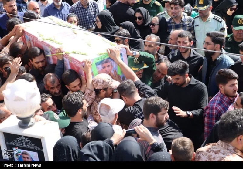 تابوت شهید بر دوش هزاران دست مردم، گاهی بالا میرفت و گاهی در میان جمعیت گم میشد، گویی هر کس میخواست لحظهای بیشتر، شهید را در آغوش داشته باشد.