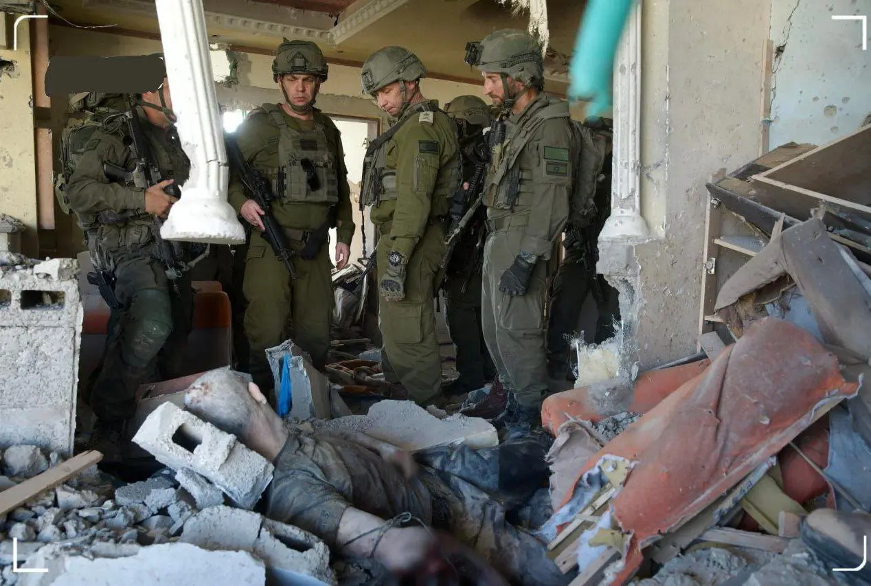 تصویری که در ادامه مشاهده میکنید، پیکر شهید السنوار را در میان افسران ارتش اشغالگر نشان میدهد؛ از جمله یارون فینکلمان فرمانده پیشین منطقه جنوبی، باراک حیرام فرمانده تیپ غزه و عودید سیوک رئیس سابق واحد عملیات.