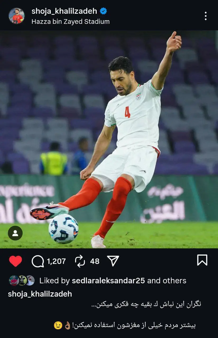 هرچند خلیل زاده بهطور مستقیم فرد یا موضوع خاصی را خطاب قرار نداده، اما انتشار چنین متنی درست پس از بازی، ذهن مخاطبان را به سمت حواشی اخیر تیم ملی و برخی نقدهای مطرحشده علیه او سوق داد.