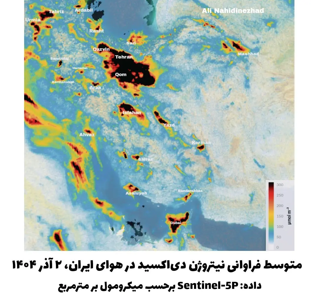 گزارش جدید از وضعیت آلاینده نیتروژن دیاکسید در هوای کشور در تاریخ ۲ آذر ۱۴۰۴ نشان میدهد که تهران و مناطق پیرامونی آن در شرایطی غیرطبیعی و نگرانکننده قرار دارند.